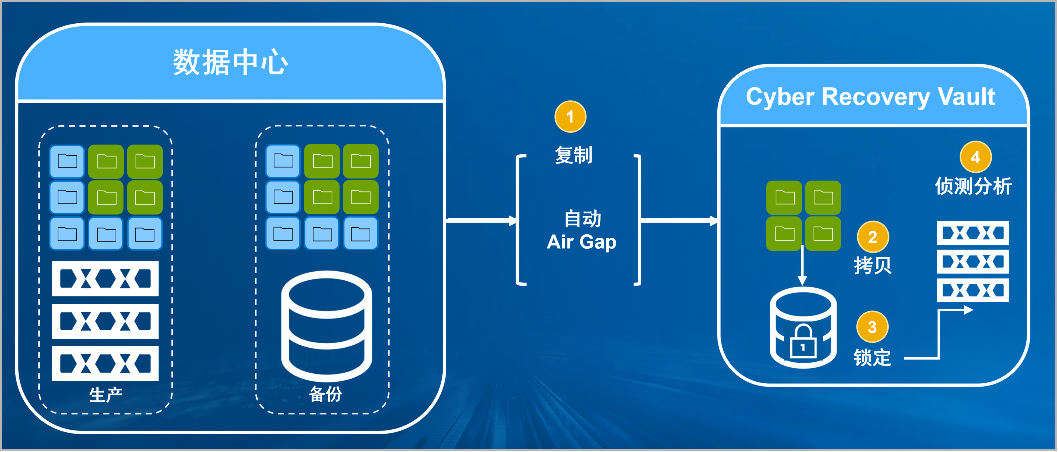 leyu.樂魚防勒索病毒方案將生產(chǎn)中心備份數(shù)據(jù)復制到Vault區(qū),復制后網(wǎng)絡(luò)自動斷開實現(xiàn)彈性隔離。Vault區(qū)的數(shù)據(jù)快速拷貝,并對拷貝版本加鎖(在鎖定期數(shù)據(jù)不允許刪除和修改)。Vault沙箱內(nèi)對拷貝版本進行掃描分析,驗證數(shù)據(jù)是否完好。